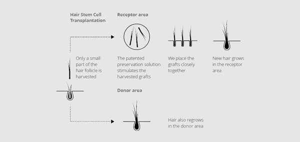 HST uses the power of nature by drawing on the capacity for regeneration of human stem cells. What is unique about this innovative technique is that only a small part of the hair follicle, instead of the entire follicle, is harvested from the donor area.