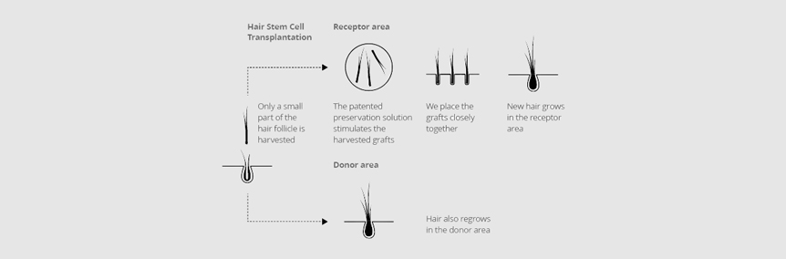 HST uses the power of nature by drawing on the capacity for regeneration of human stem cells. What is unique about this innovative technique is that only a small part of the hair follicle, instead of the entire follicle, is harvested from the donor area.